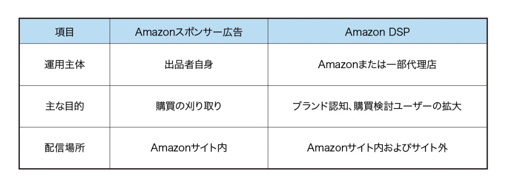 Amazon DSP広告とAmazonスポンサー広告の主な違いは何ですか?