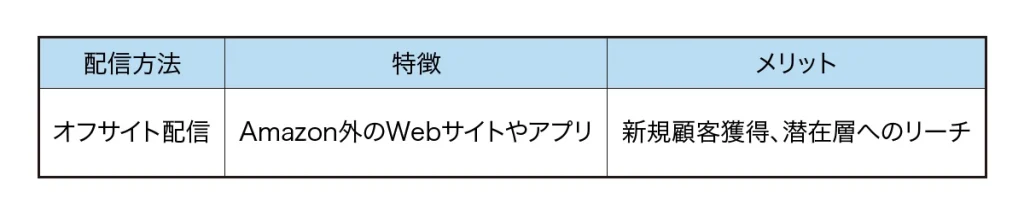• オフサイト配信: Amazon外の多様なメディアで潜在顧客にリーチできます