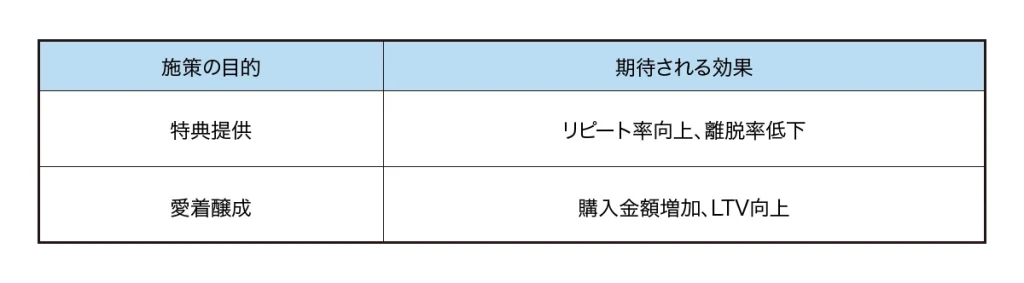 - 顧客の維持・定着:顧客が繰り返し購入する明確な理由を提供し、離反を防ぎます。