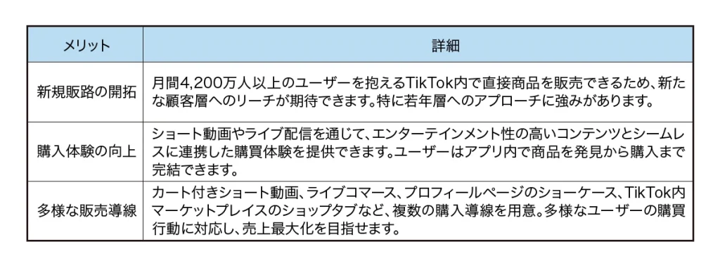 TikTok Shopをセラーとして活用するメリットは、主に以下の3点に集約されます。