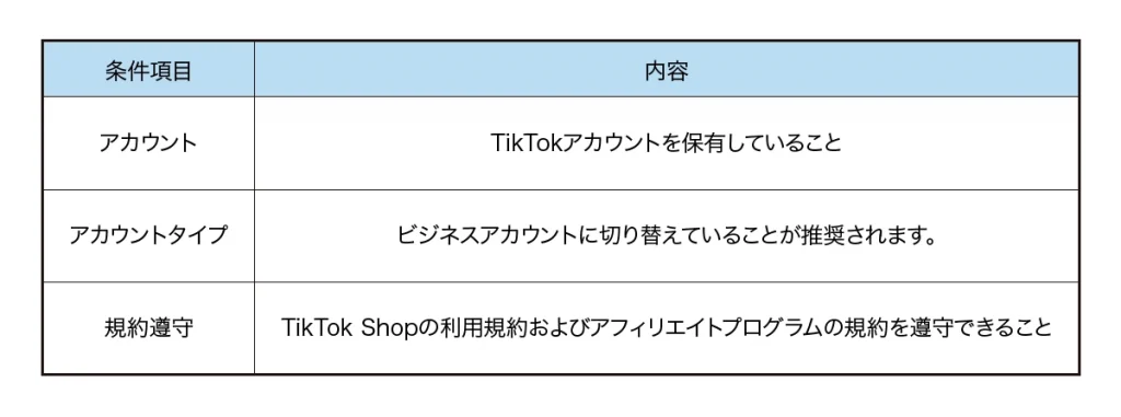 TikTok Shopクリエイターとしてアフィリエイトプログラムに参加するには、いくつかの条件を満たす必要があります。これらの条件は、プラットフォームの健全性とクリエイターの信頼性を維持するために設けられています。