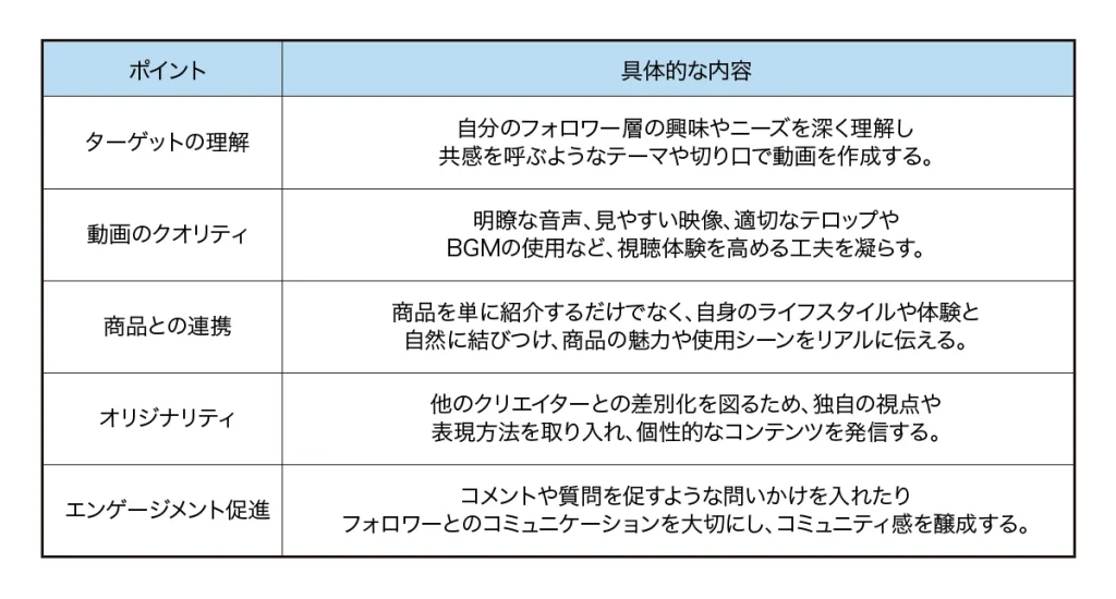 TikTok Shopクリエイターとして成功するためには、以下の点が重要となります。