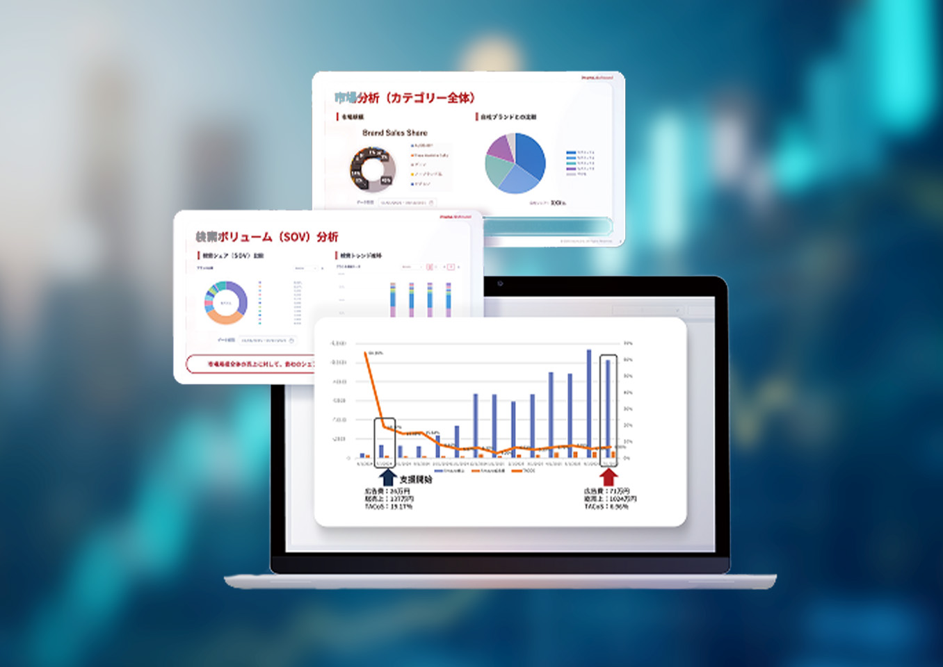 カテゴリ占有率や競合動向をリアルタイム分析。市場の空白地帯を特定し、根拠に基づく市場拡大とシェア獲得を加速させます。